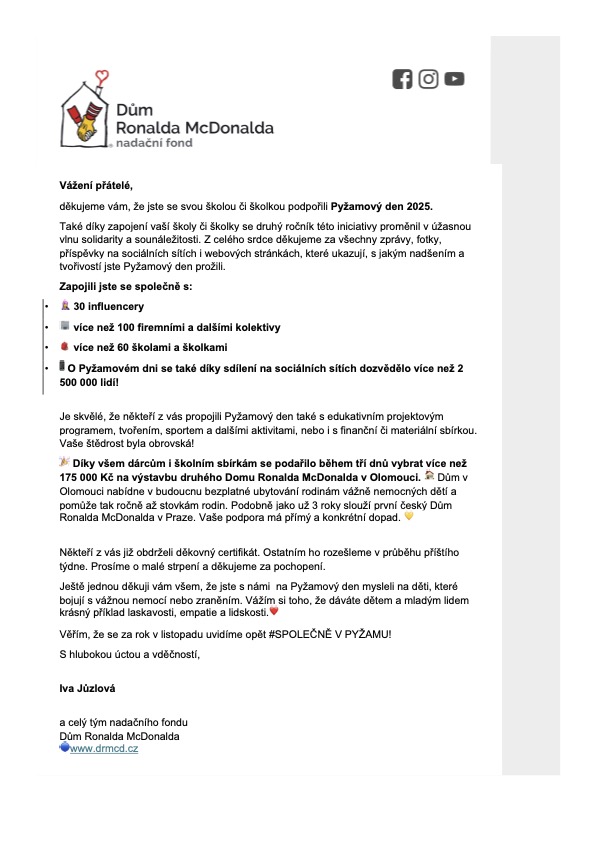 Děkujeme za spolupráci.